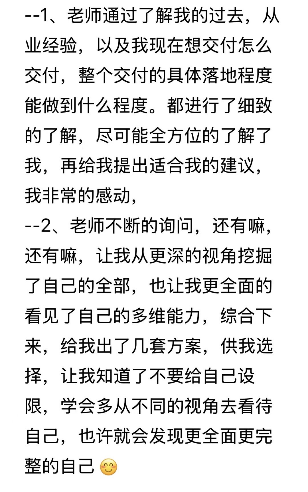 帮一个人从"认识自己",走到"把自己变成有市场价值的产品"。一套帮你拿到明确结果的服务体系。