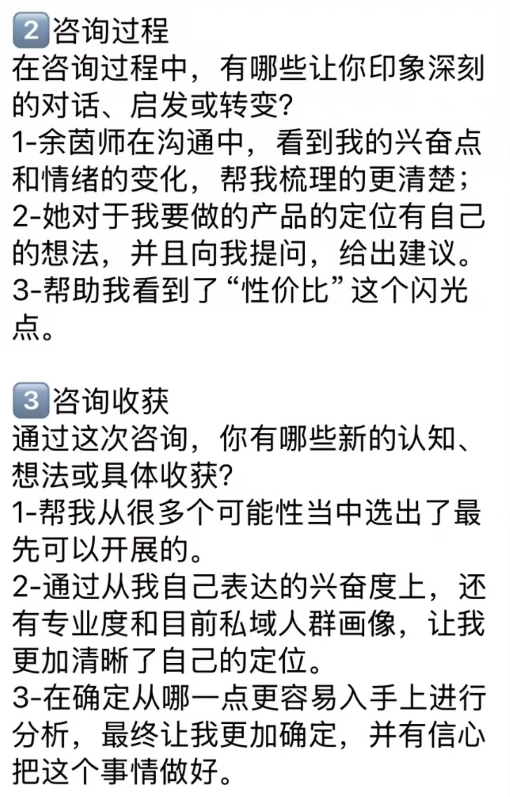 这是我最核心的差异化。我能帮你把优势变成产品,把经验变成价值,把一对一服务逐步升级为可复制的产品体系。包括定位梳理、产品矩阵、定价策略和获客路径设计。